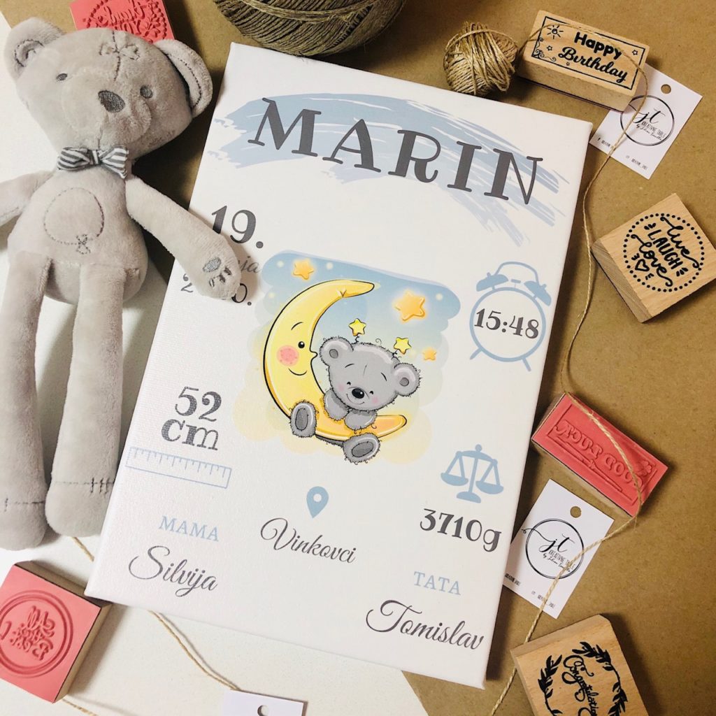 Jelena je počela sa izradom tabli za dekoraciju za prvi rođendan na kojima su bebini podaci, kao i sve zanimljive stvari koje su se desile tokom prve bebine godine. Kasnije je asortiman proširila sa još nekoliko tabli. Sada su u ponudi table rođenja, table otisaka, porodične table, azbuke, abecede… Sve table su rađene na najkvalitetnijem slikarskom platnu, a dizajn klijenti mogu birati sami.
